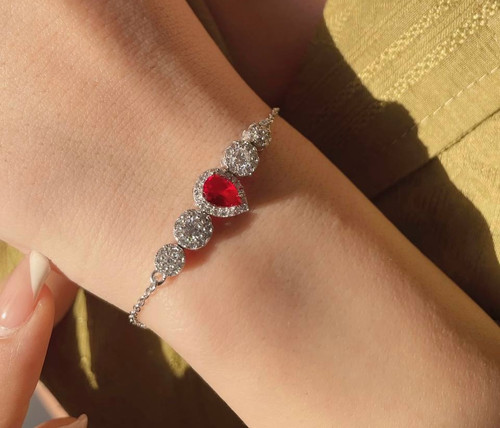 دستبند نقره اشک طرح یاقوت سرخ 0043