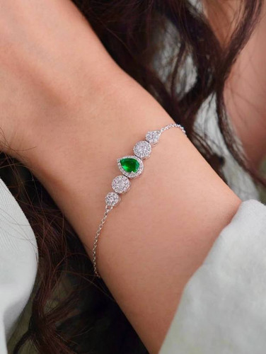 دستبند نقره اشک طرح زمرد 0071
