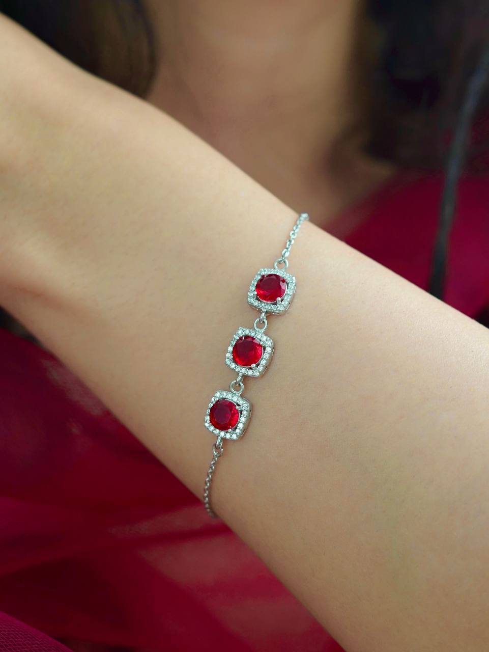 دستبند نقره طرح یاقوت سرخ 0074