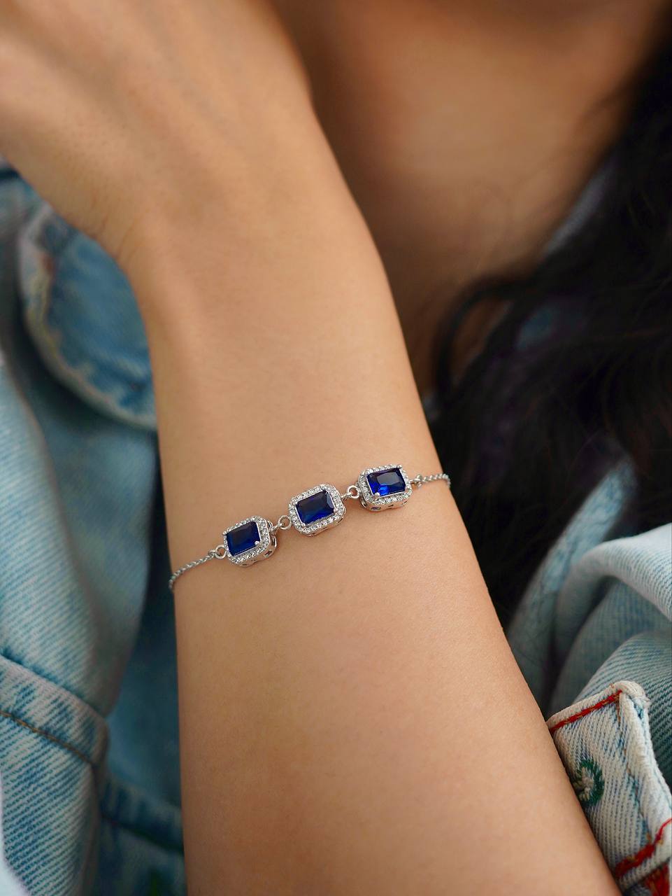دستبند نقره امرالدکات طرح یاقوت کبود 0073